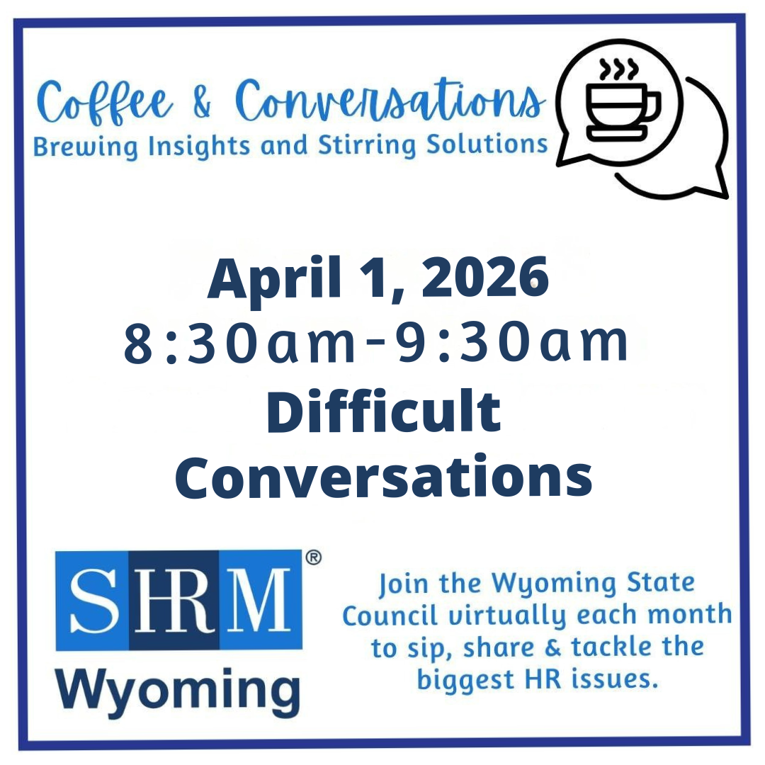 Join the Wyoming State Council virtually each month to sip, share & tackle the biggest HR issues. These meetings are always held the first Wednesday of the month at 8:30am.