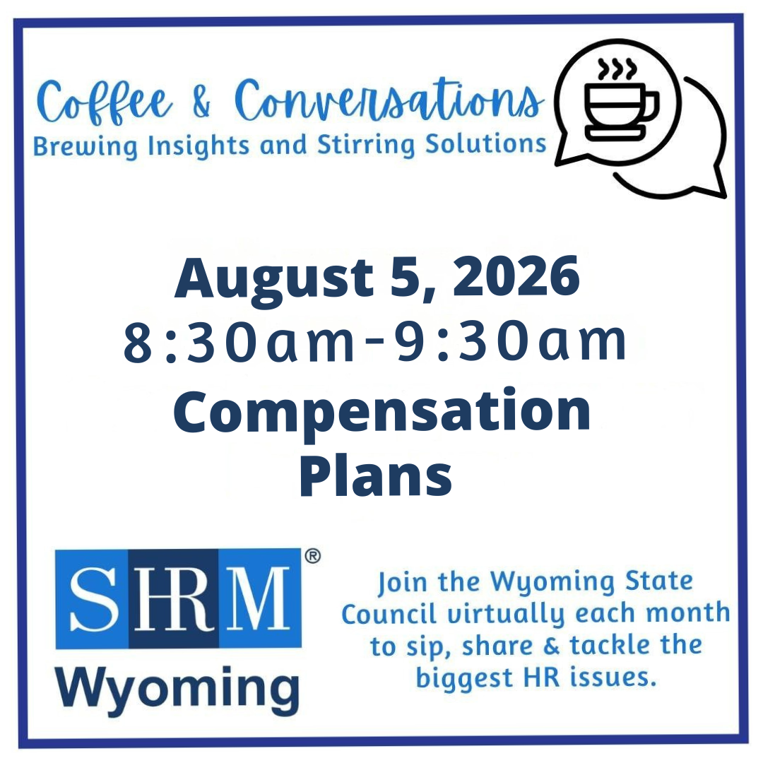 Join the Wyoming State Council virtually each month to sip, share & tackle the biggest HR issues. These meetings are always held the first Wednesday of the month at 8:30am.