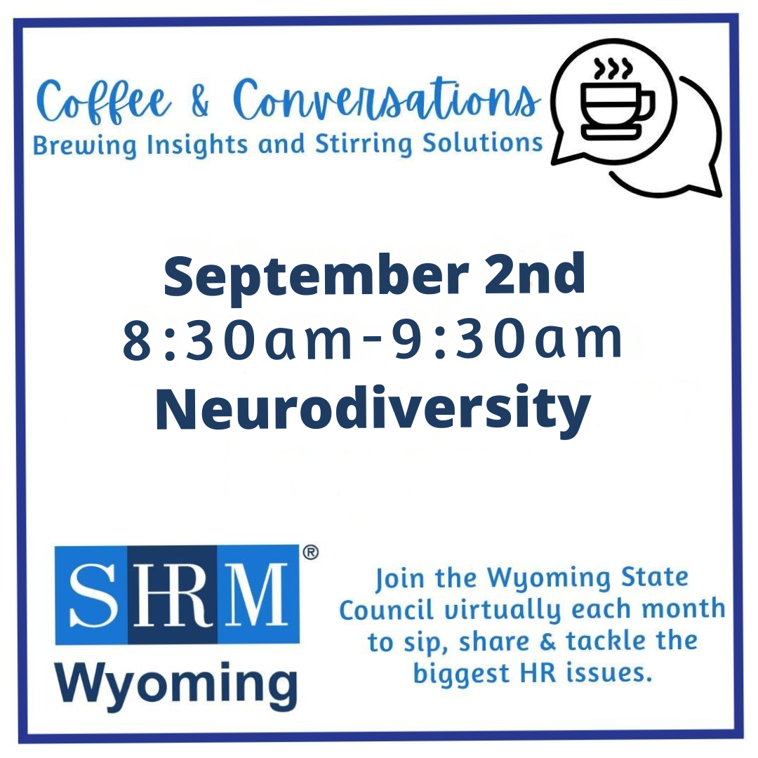 Join the Wyoming State Council virtually each month to sip, share & tackle the biggest HR issues. These meetings are always held the first Wednesday of the month at 8:30am.