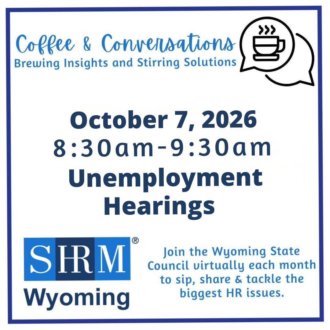 Join the Wyoming State Council virtually each month to sip, share & tackle the biggest HR issues. These meetings are always held the first Wednesday of the month at 8:30am.